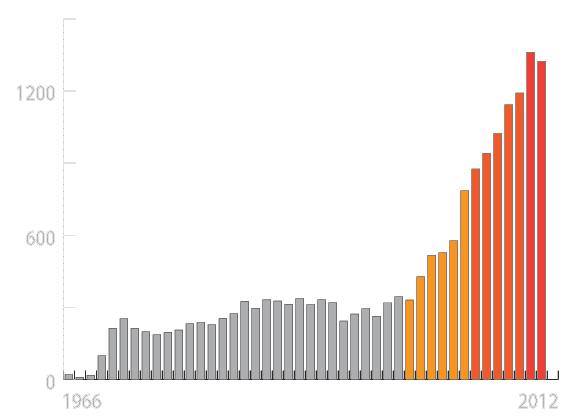 To give you an idea, I recently was researching on Pubmed and discovered the trend. The graph shows the number of acupuncture studies conducted each year from 1996 to 2012. And let me tell you, the numbers are impressive! I used actual data from the PubMed database to create this graph, so you can trust that it’s accurate. Now, I should note that I excluded data from 2013 since, at the time of my observation, the year was still in progress.
